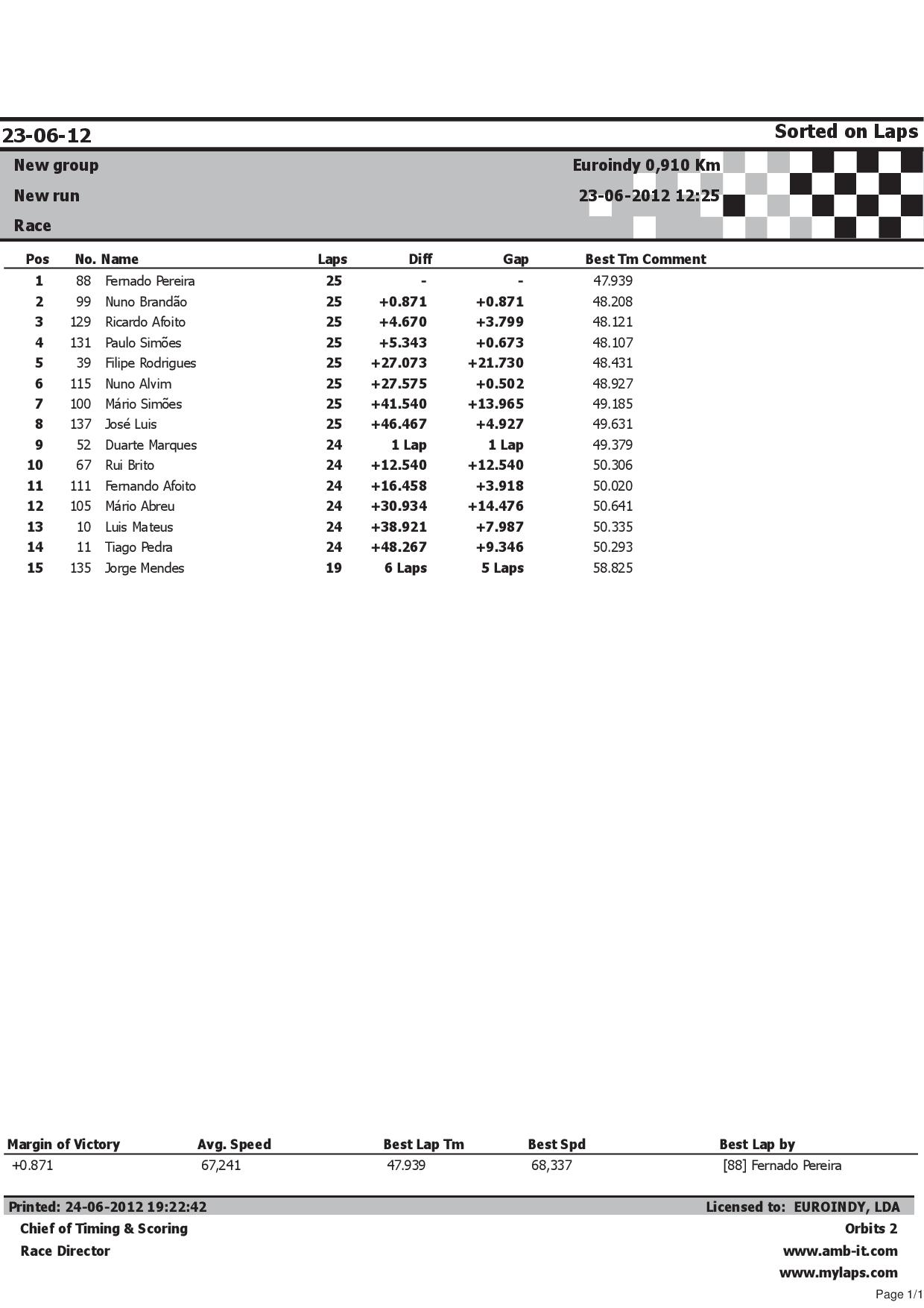 condições. Fernando Marques venceu a prova com uma